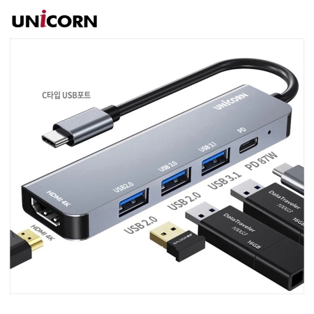 À¯´ÏÄÜ 5IN1 HDMI CŸÀÔ USB¸ÖƼÇãºê 4Æ÷Æ®Çãºê 4K¹Ì·¯¸µ PD 87WÃæÀü TCH-P20